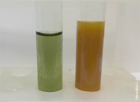 Проба на наличие глюкозы в виноградном и яблочном соке. Обнаружить глюкозу в соке можно следующим образом. В пробирку наливают 1 мл красного или белого виноградного сока или виноградного нектара и добавляют к нему столько же 10 % раствора гидроксида натрия NaOH. При обращении со щелочью будьте осторожны! Слегка встряхивают пробирку, чтобы вещества перемешались. Если был взят красный сок, то жидкость приобретет зеленоватый оттенок.